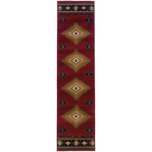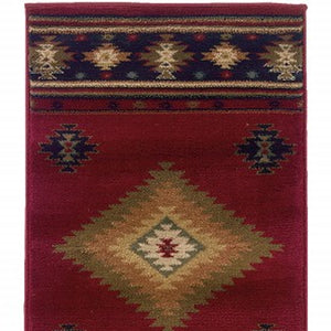 2' X 8' Red And Beige Ikat Pattern Runner Rug