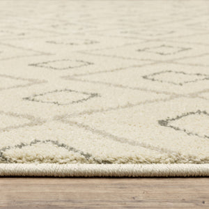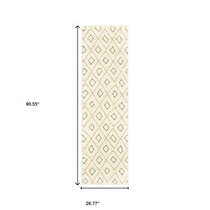 2' X 8' Sand Ash Grey And Ivory Geometric Power Loom Stain Resistant Runner Rug