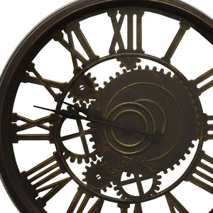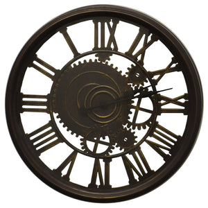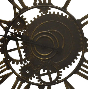 20" Antiqued Gold And Brown Heavy Duty Plastic Silent Skeleton Distressed Exposed Gear Round Wall Clock
