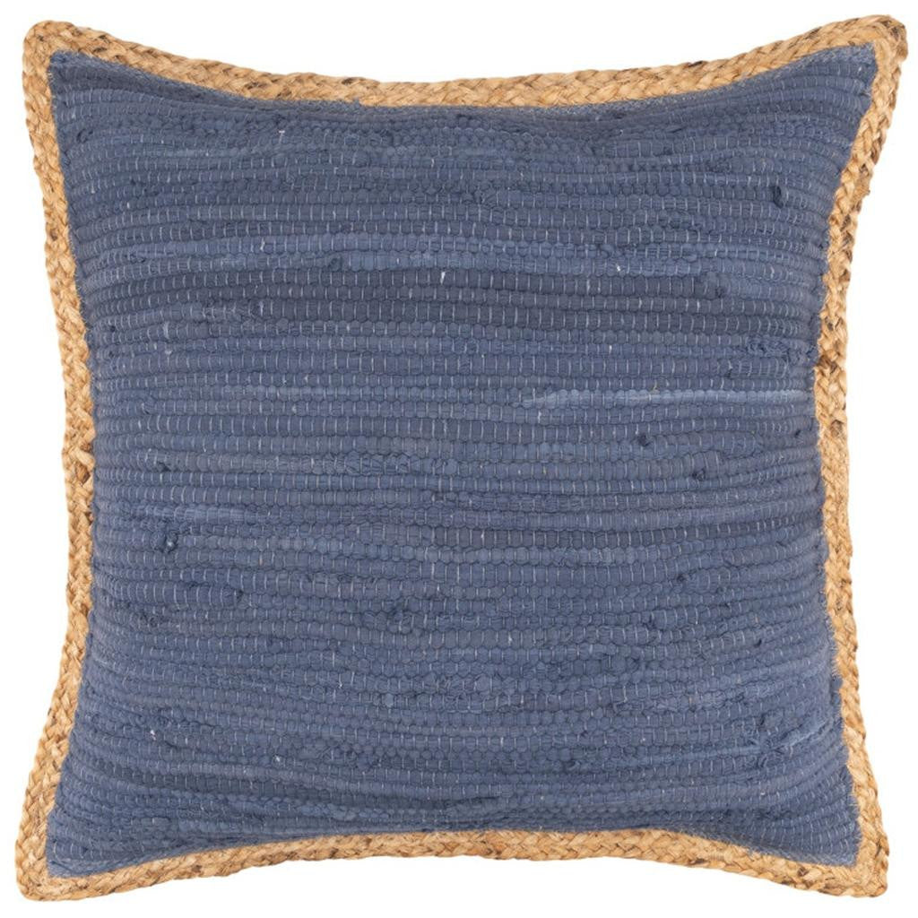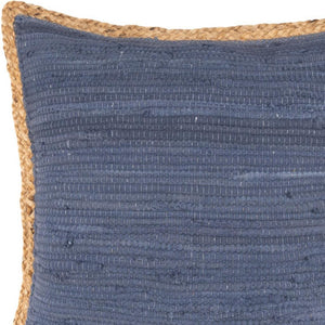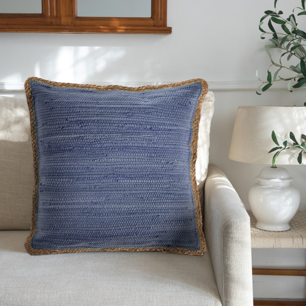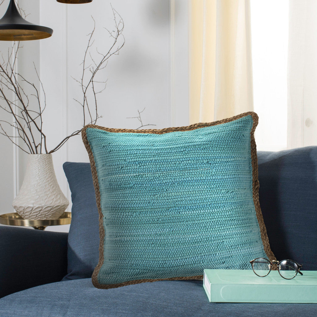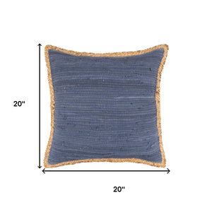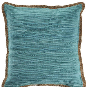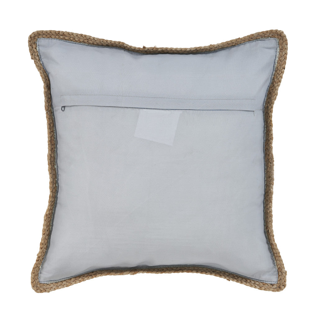 20" Blue And Tan Beach Cotton Blend Throw Pillow Cover