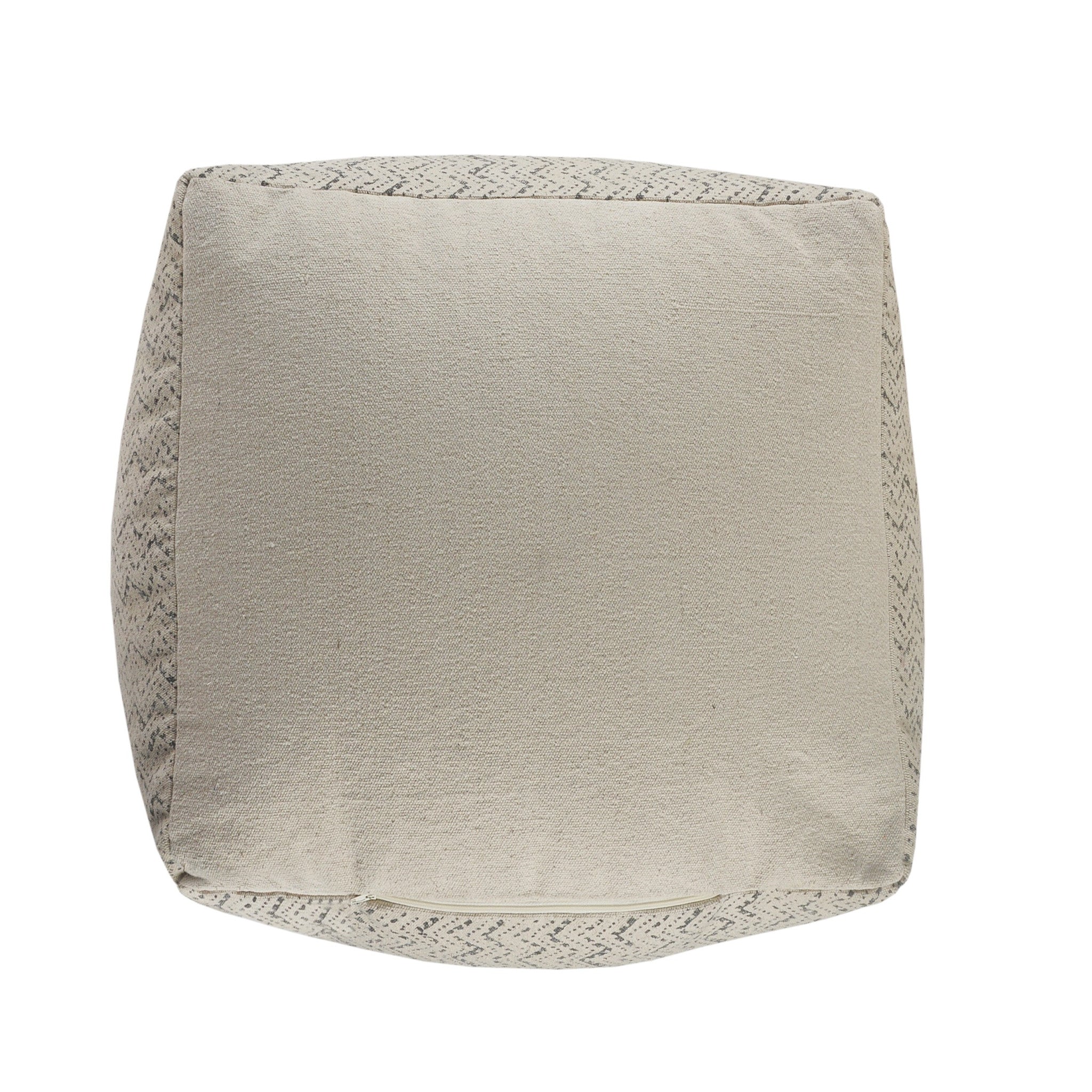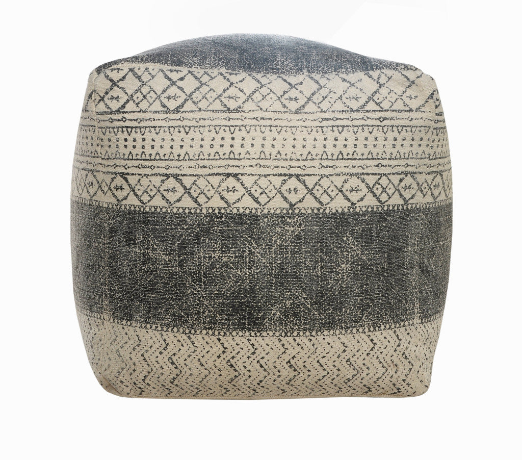 20" Cream Cotton Tribal Pouf Ottoman