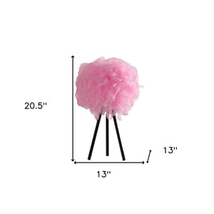 21" Black Tripod Table Lamp With Pink Faux Feather Shade