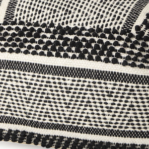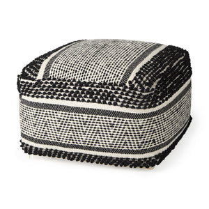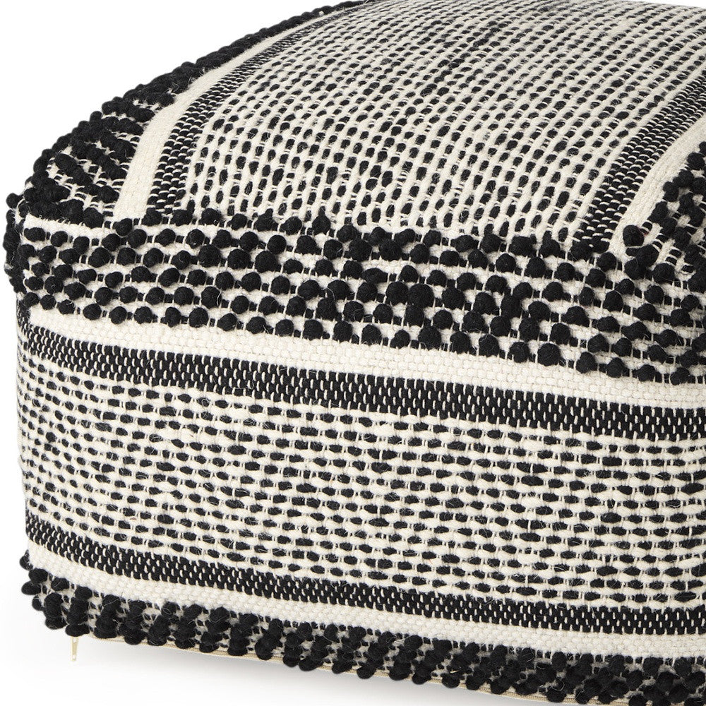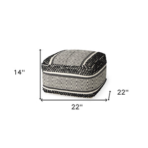 22" Black and White Cotton And Wool Geometric Pouf Ottoman