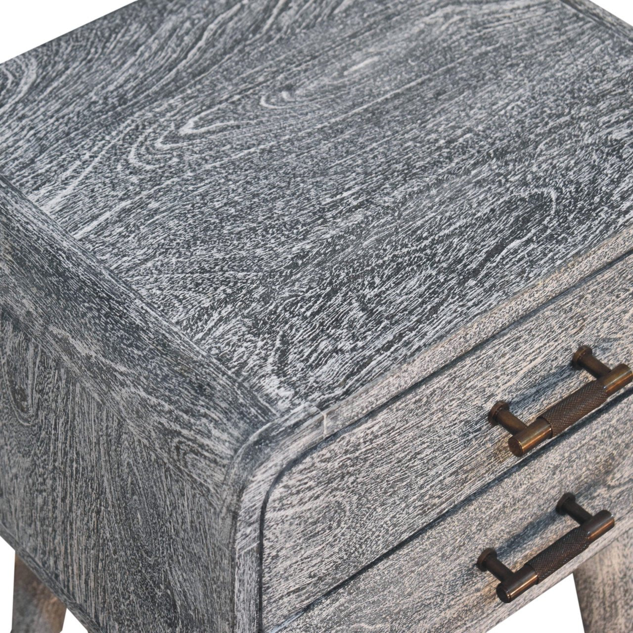 22" Gray Solid Wood Distressed Two Drawer Nightstand