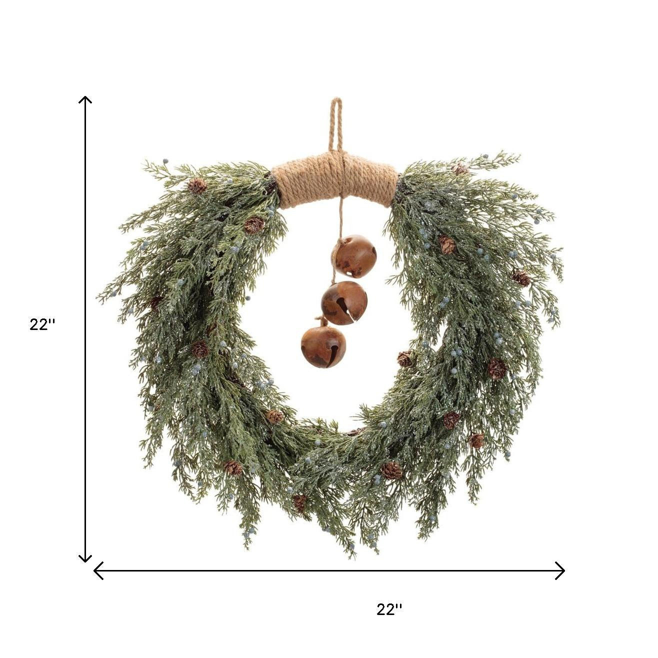 22" Green And Brown Pine And Jingle Bells Artificial Christmas Wreath