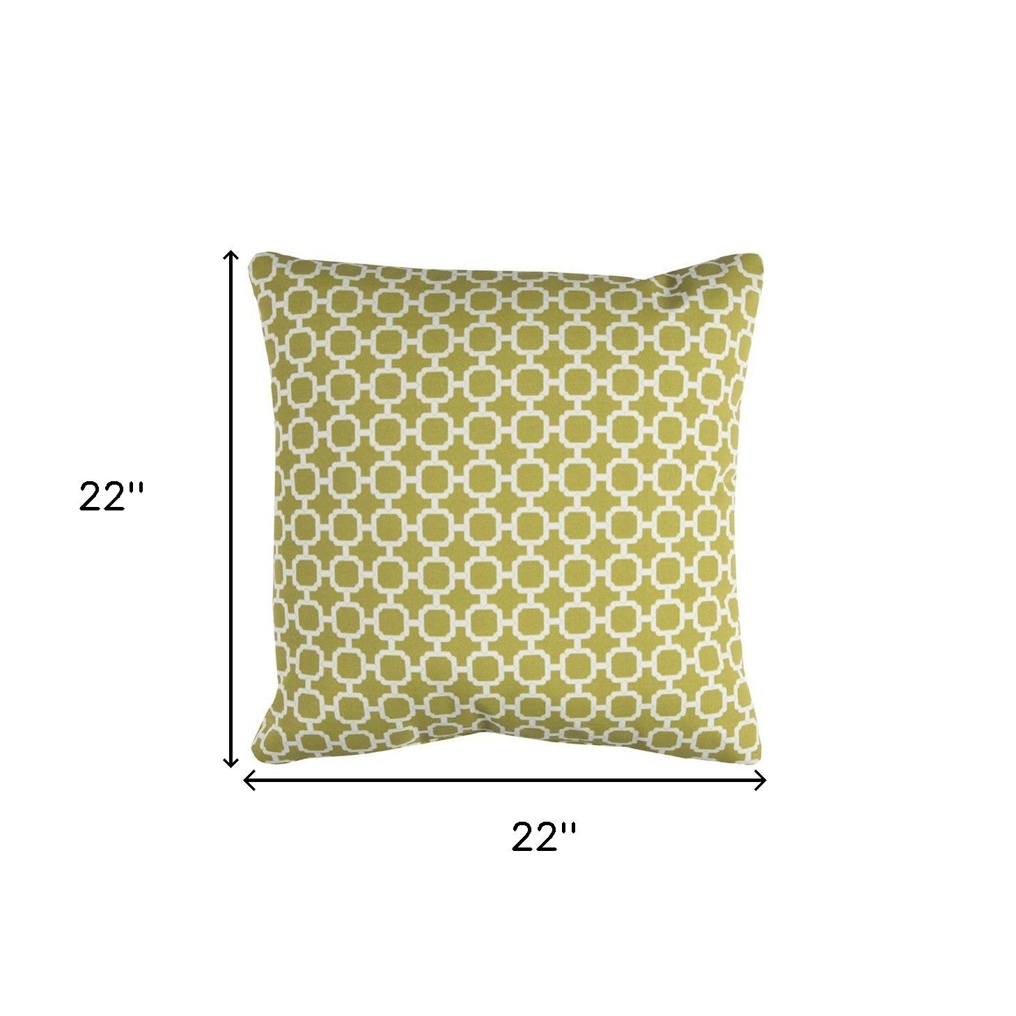 22" Green and White Quatrefoil Indoor Outdoor Throw Pillow