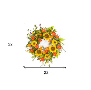 22" Green And Yellow Summer Sunflower Artificial Wreath