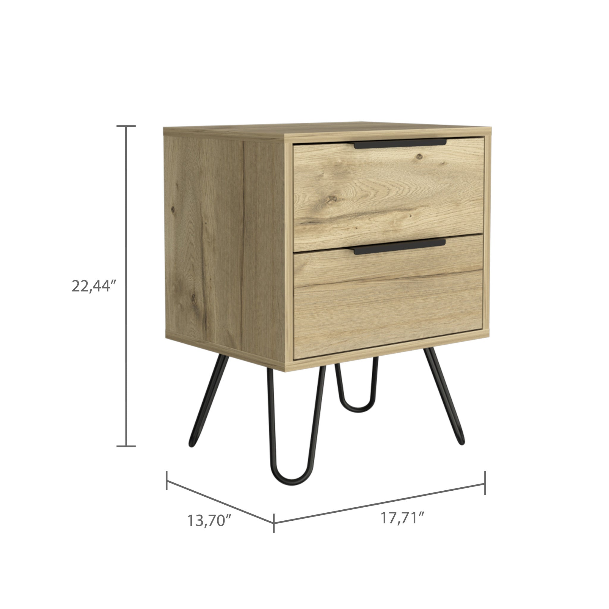 22" Oak Wood Two Drawer Nightstand