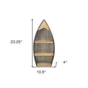 23" Brown And Gray Galvanized Metal And Wood Wall Mounted Boat Shelf