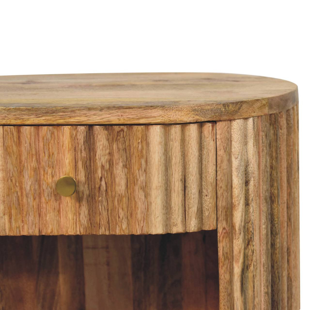 23" Natural Solid Wood Oval Ribbed Texture One Drawer Nightstand