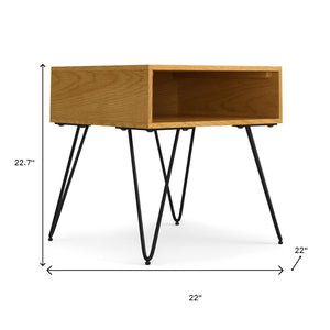 23" Oak Metal Square End Table