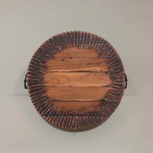 24" Natural And Smoky Black Reclaimed Wood Round Drum End Table