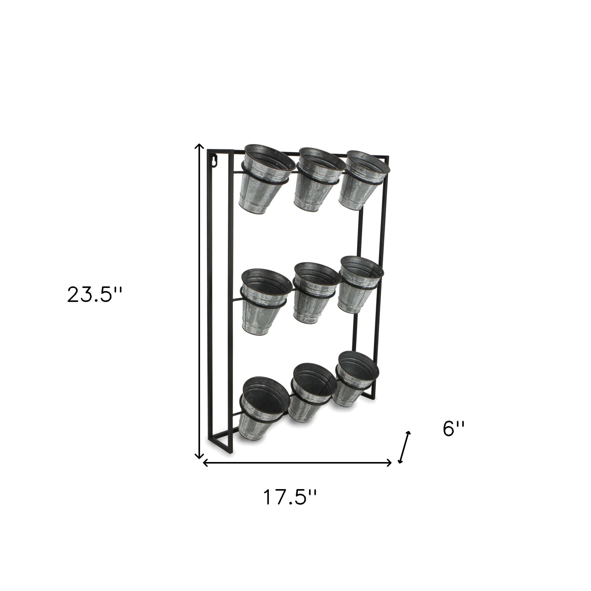 24" X 18" Black And Silver Metal Rectangular Wall Planter