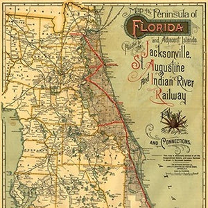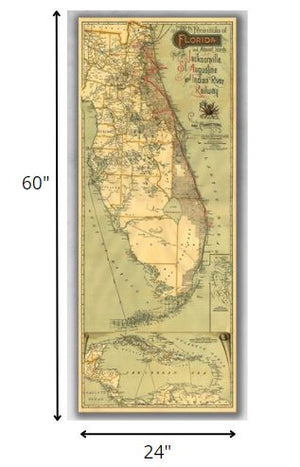 24" X 60" Map Of Jacksonville Florida Vintage Poster Wall Art