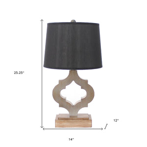 25" Distressed Brown Wood Novelty Bedside Lamp With Black Drum Shade