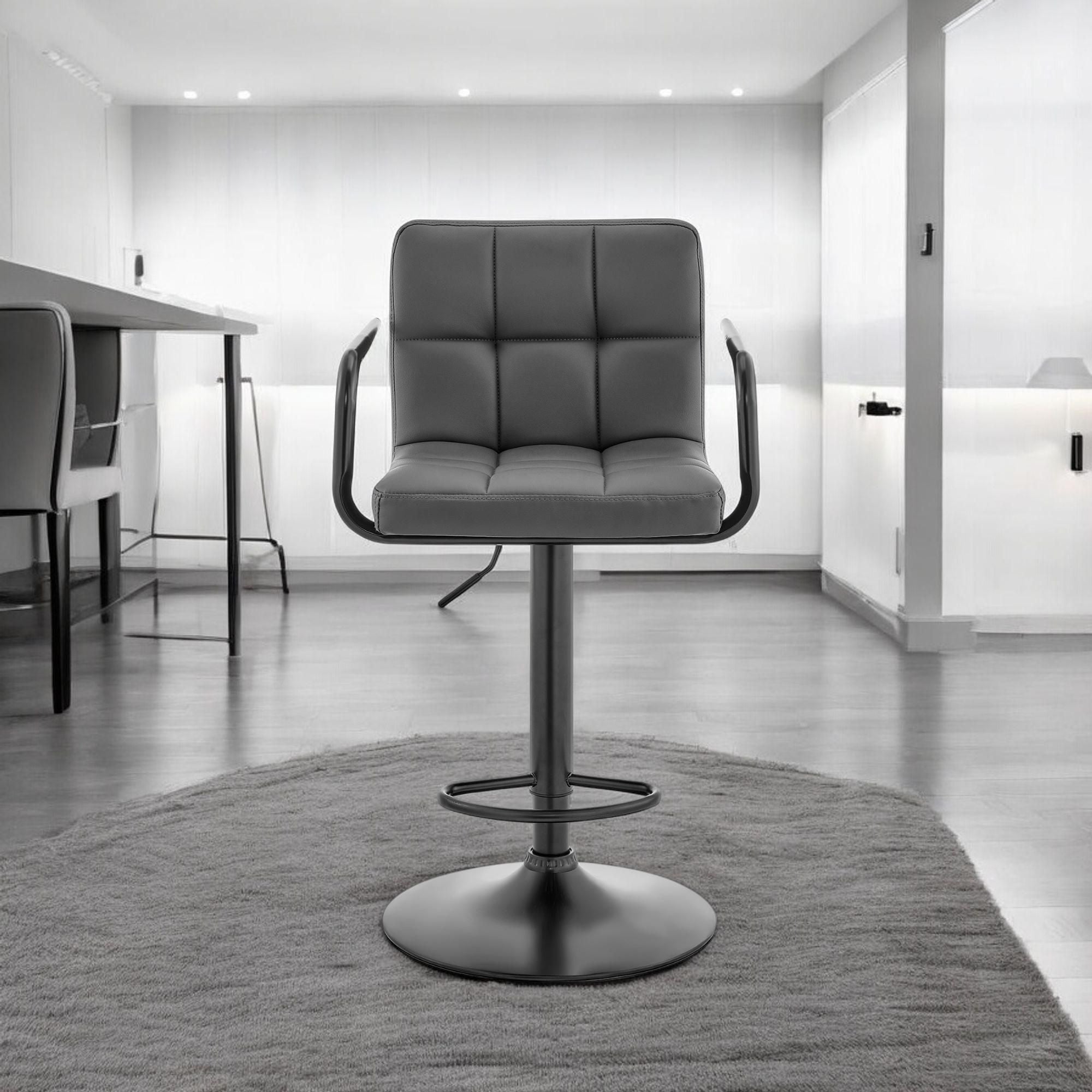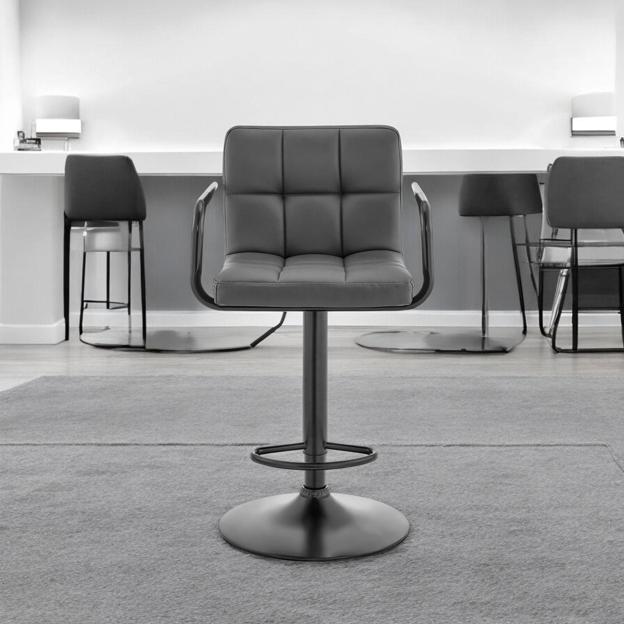 25" Gray And Black Faux Leather And Iron Swivel Low Back Adjustable Height Bar Chair