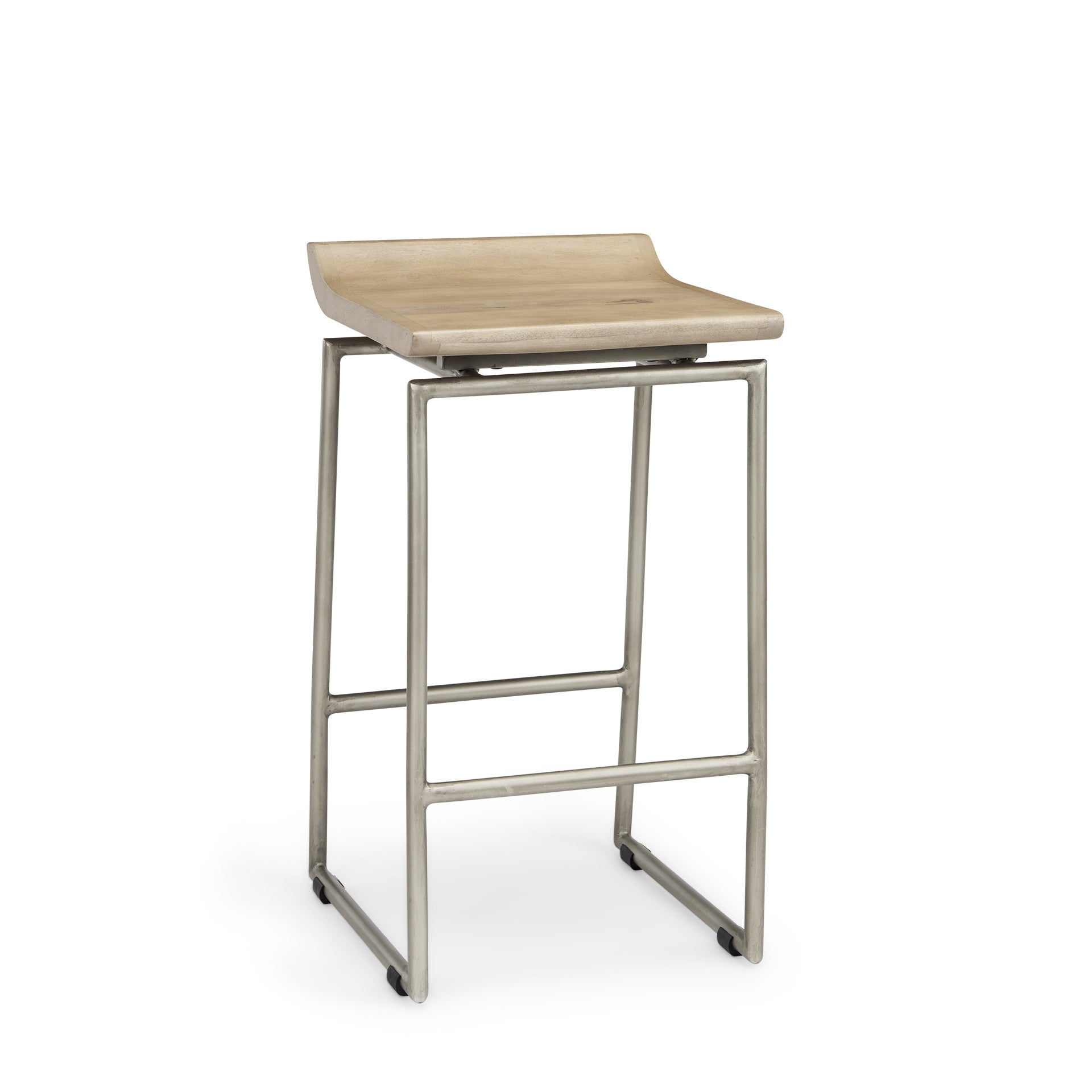 25" Natural and Silver Solid Wood and Iron Low Back Counter Height Bar Chair