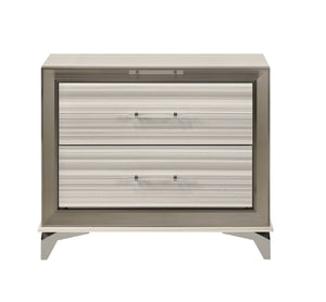 25" Silver And White Wood Lighted Two Drawer Nightstand
