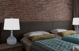 25" Stone Ceramic Round Table Lamp With White Empire Shade