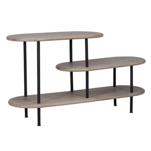 25 White And Gray Iron and Solid Wood Three Tier Bookcase