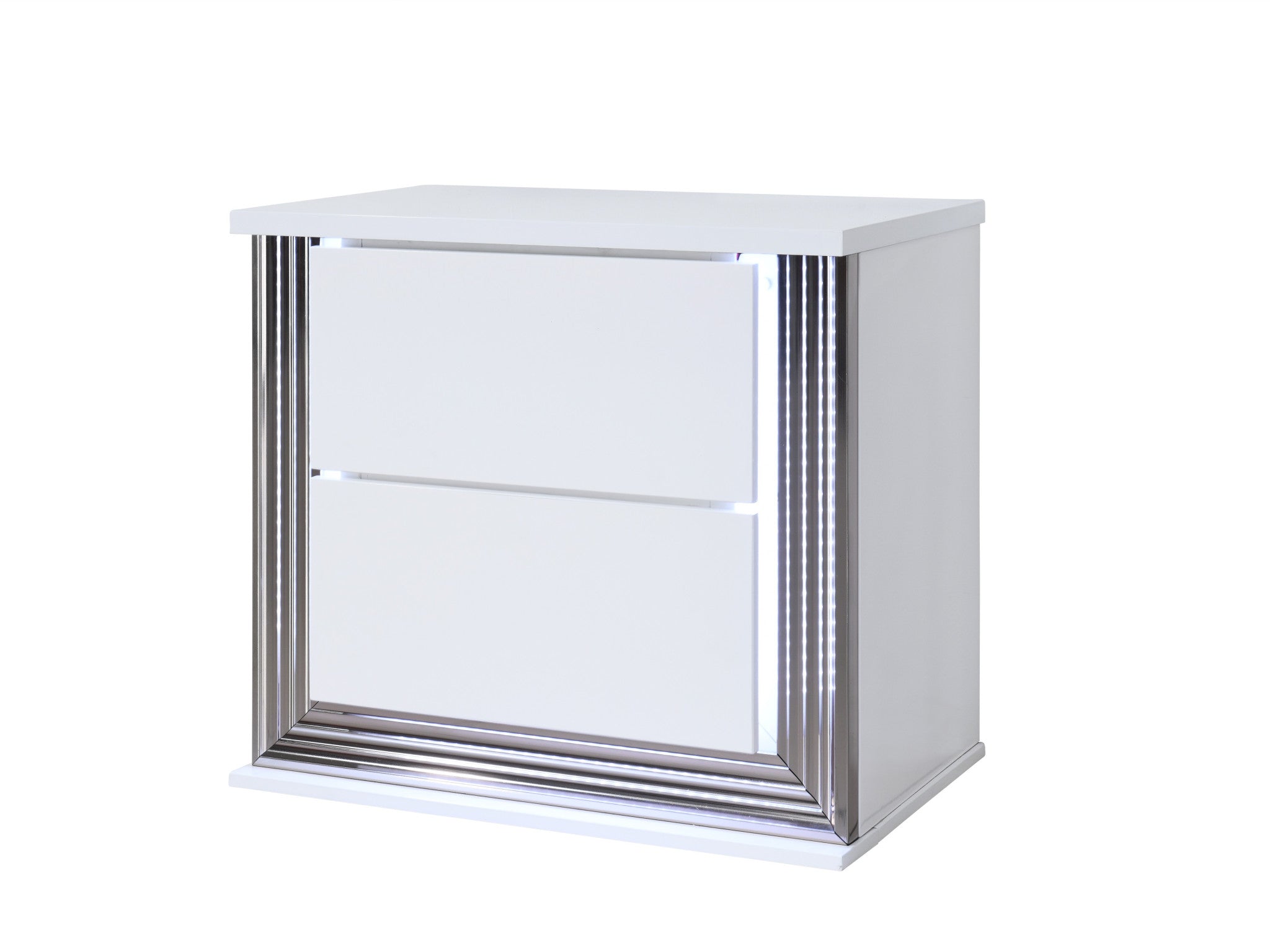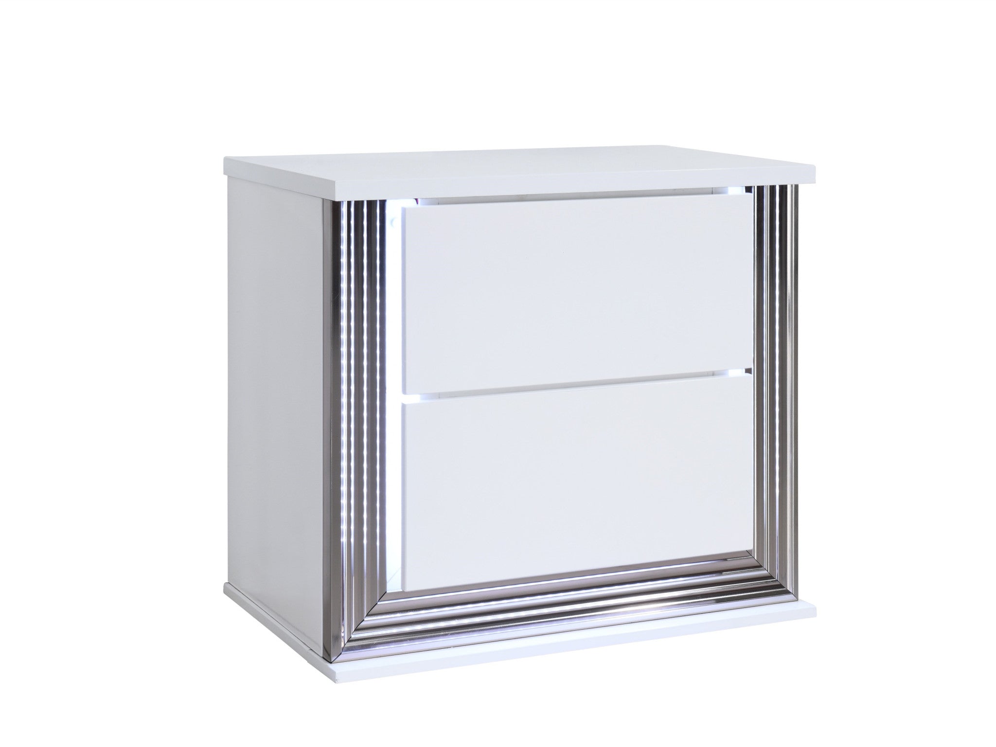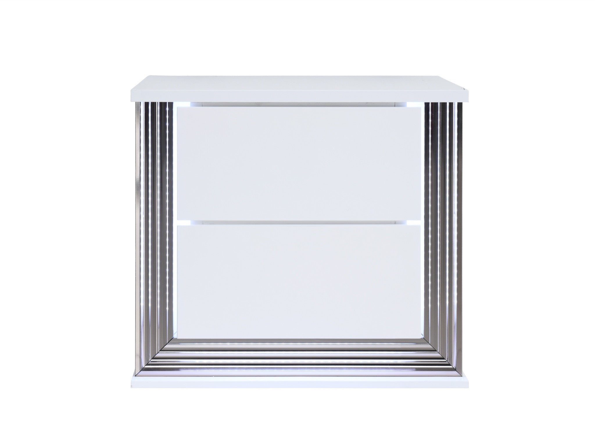 25" White Solid and Manufactured Wood Lighted Two Drawer Nightstand