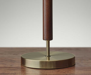 26" Antiqued Brass Solid Wood Table Lamp With Beige Drum Shade