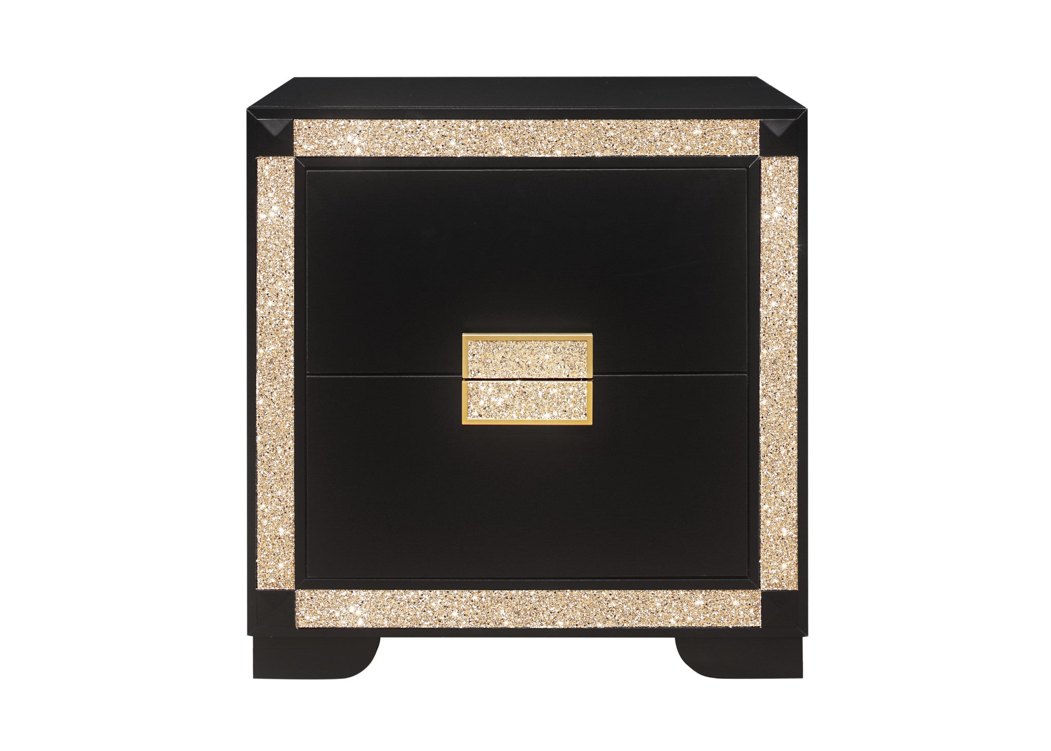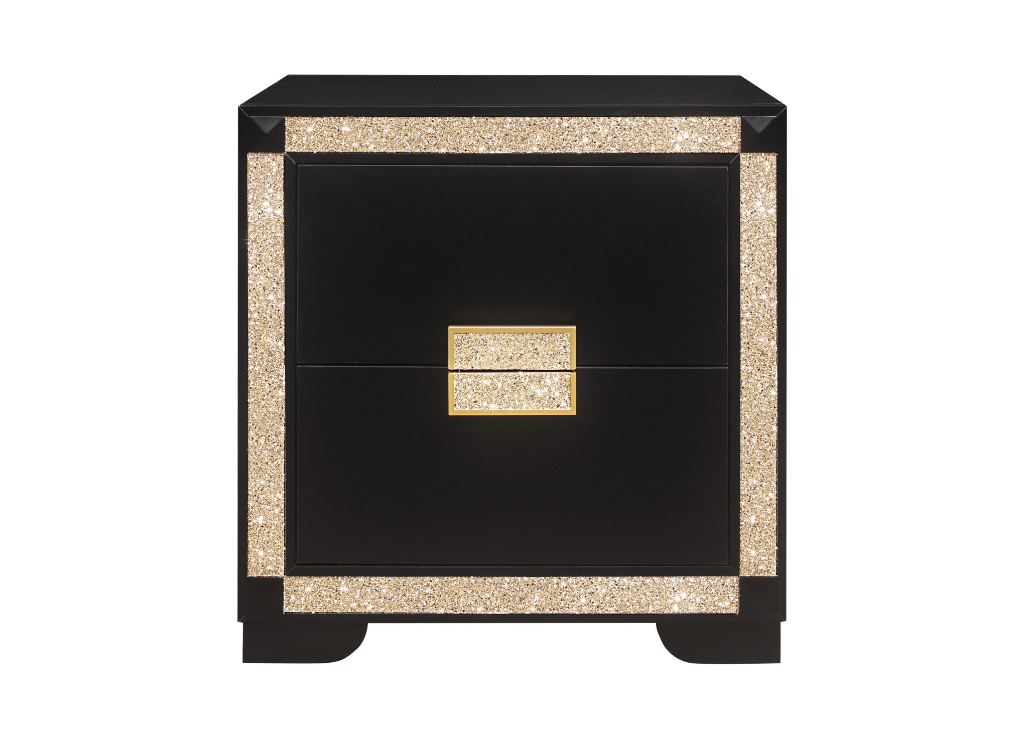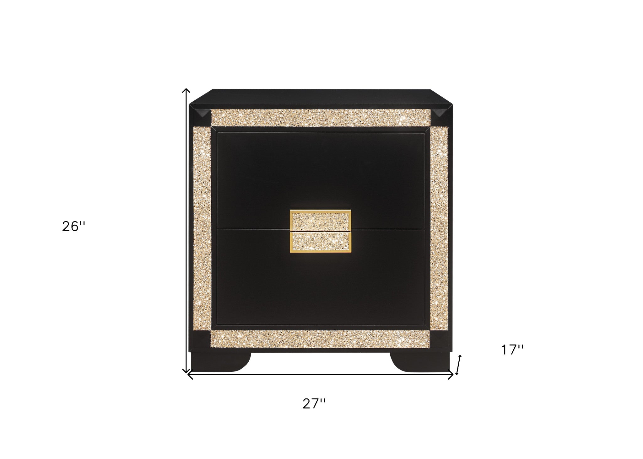 26" Black and Gold Two Drawer Faux Crystal Bling Wood Nightstand