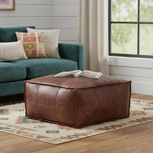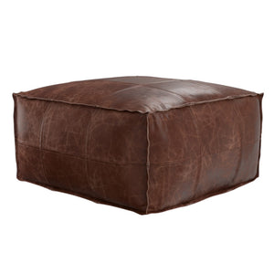 26" Brown Leather Pouf Ottoman
