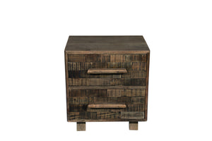 26" Brown Solid Wood Carved Geometric Two Drawer Nightstand