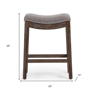 26" Gray and Brown Fabric and Solid Wood Backless Counter Height Bar Chair