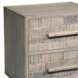 26" Gray Solid Wood Carved Geometric Two Drawer Nightstand