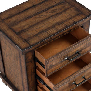 26" Walnut Wood Distressed Three Drawer Nightstand