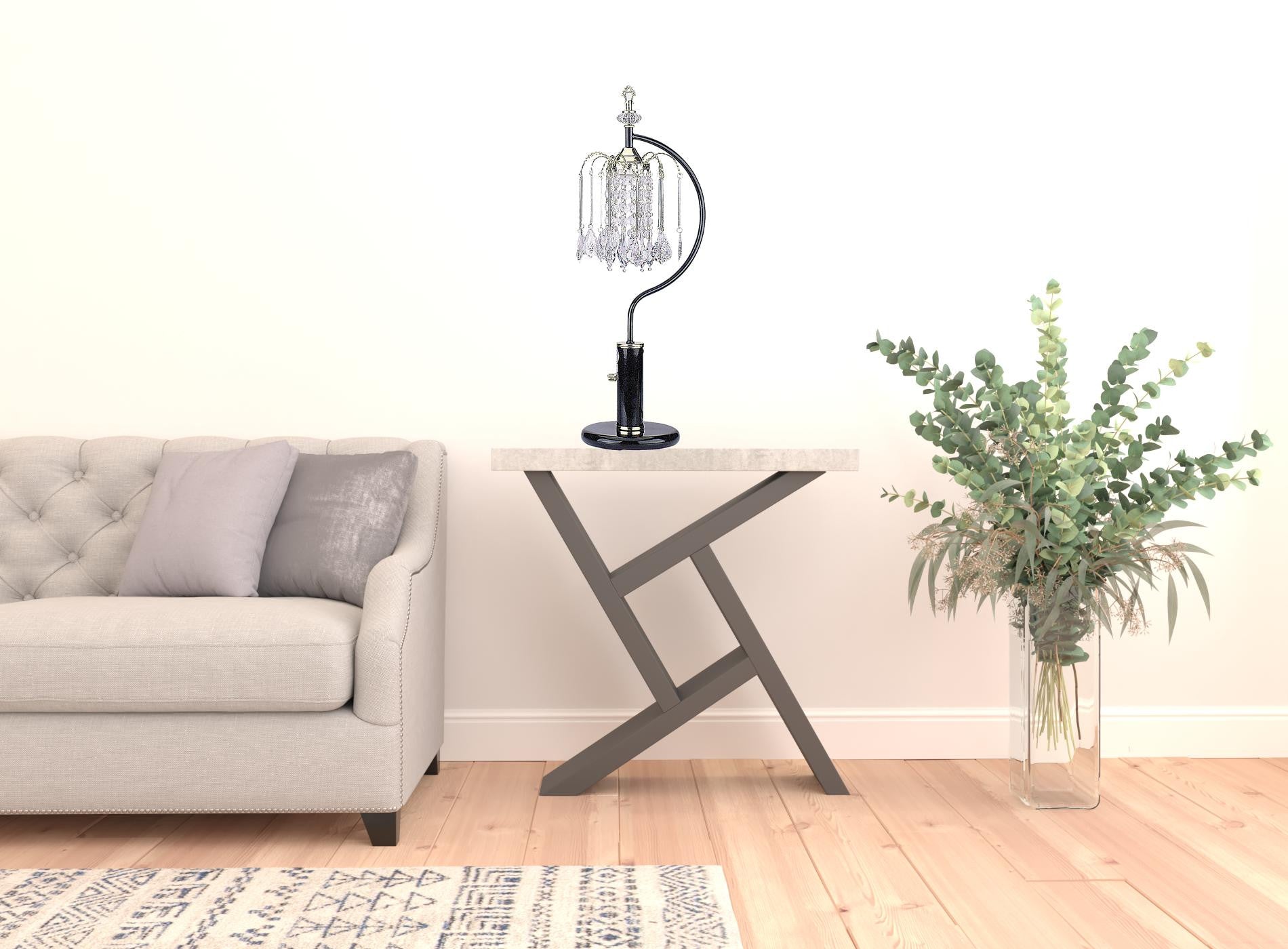 27" Black and Gold Metal Faux Crystal Chandelier Table Lamp