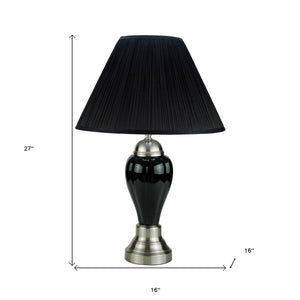 27" Black and Silver Ceramic Urn Table Lamp With Black Empire Shade