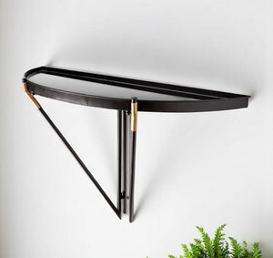 27" Black And Silver Glass And Metal Half Circle Wall Mounted Accent Shelf