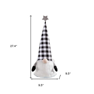 27" Black And White Felt And Faux Fur Gnome Adjustable Height Tree Topper
