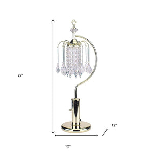 27" Gold Metal Chandelier Faux Crystal Table Lamp