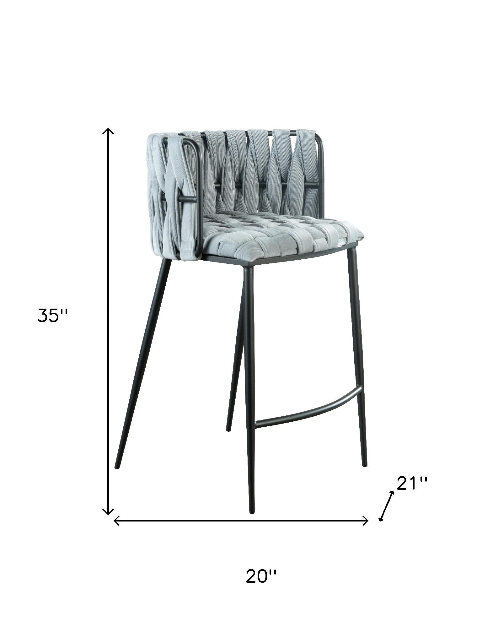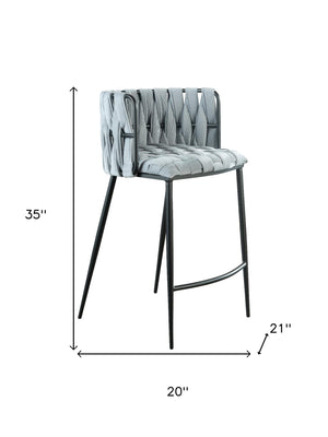 27" Gray and Black Velvet and Steel Low Back Counter Height Bar Chair