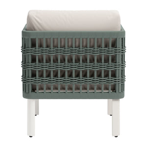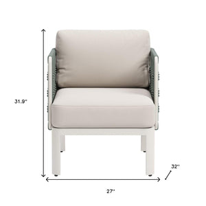 27" Green And White Aluminum Outdoor Accent Chair with White Cushion