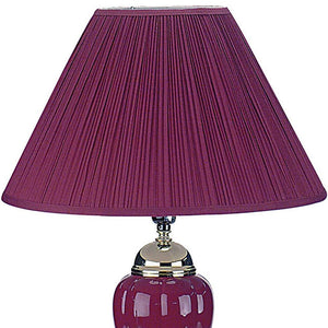 27" Silver Ceramic Bedside Table Lamp With Magenta Empire Shade