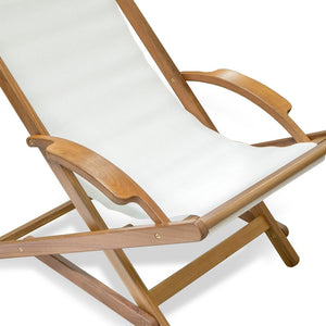 27" White and Natural Wood Solid Wood Indoor Outdoor Deck Chair