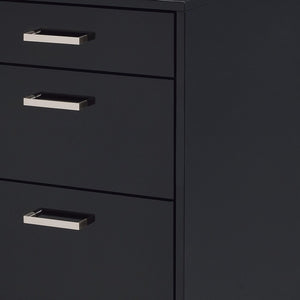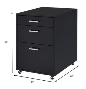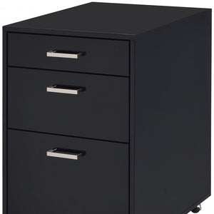 28" Black Wood And Metal Three Drawers Filing Cabinet