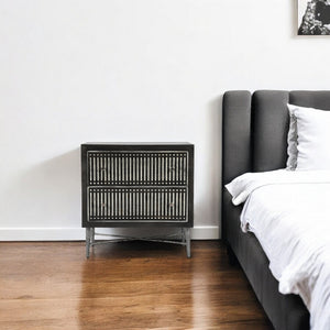 28" Dark Brown Solid Wood Two Drawer Nightstand