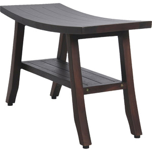 28" Dark Brown Teak Rectangular Shower Bench With Shelf