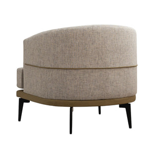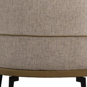 29" Beige Camel and Black Tufted Linen Solid and Manufactured Wood Barrel Chair