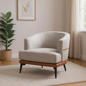 29" Beige Terra Cotta and Black Linen Upholstered Wood Barrel Chair