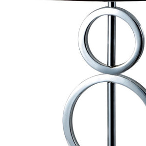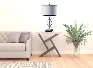 29" Silver Metal Bedside Geo Table Lamp With White and Black Trim Classic Drum Shade
