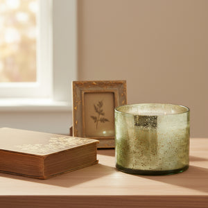 3" White Scented Dripless Two Wick Designer Candle With Green Holder