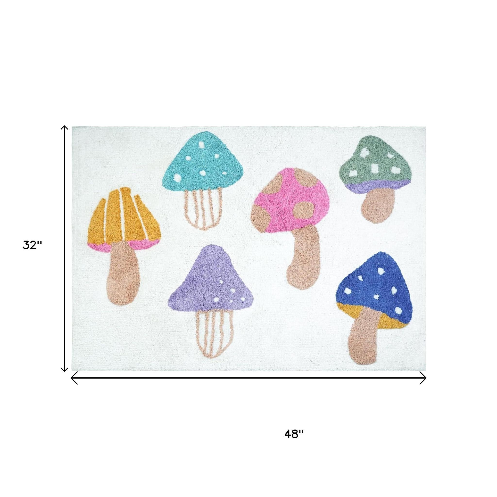 3' X 4' White Blue And Green Mushrooms Youthful Washable Area Rug