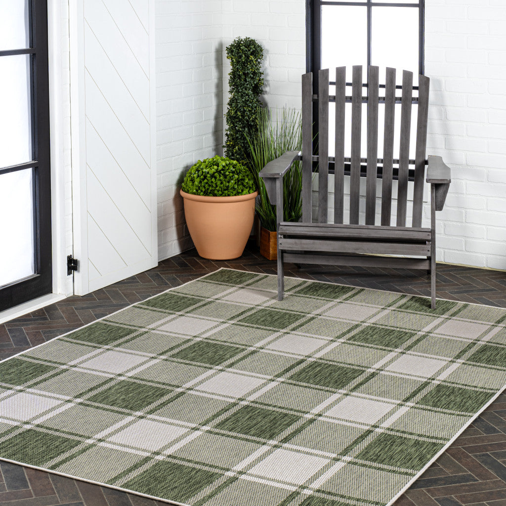 3' X 5' Green And Cream Gingham Indoor Outdoor Area Rug